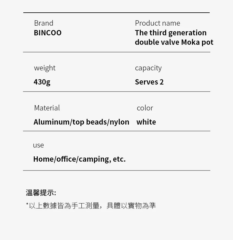 La cafetière à moka à double valve Bincoo est dotée d'un système unique à double valve pour une extraction précise de l'espresso.