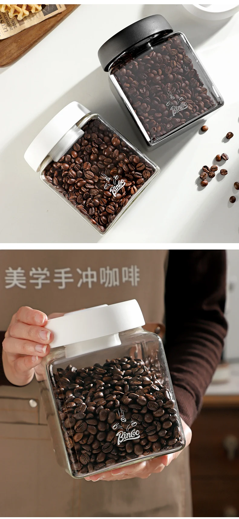 Numéro de modèle : BINCOO Réservoir scellé sous vide 1200 ml Pot de stockage scellé en verre pour grains de café