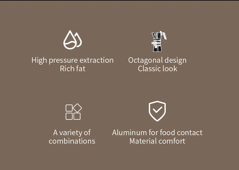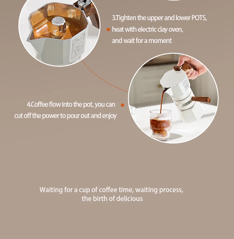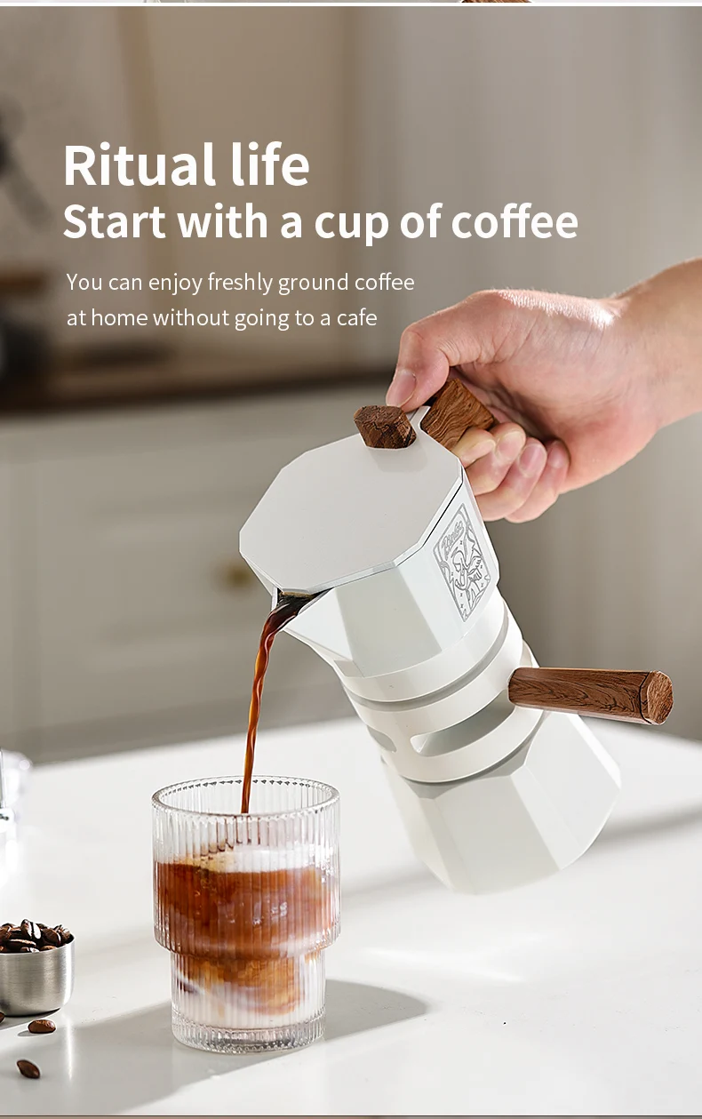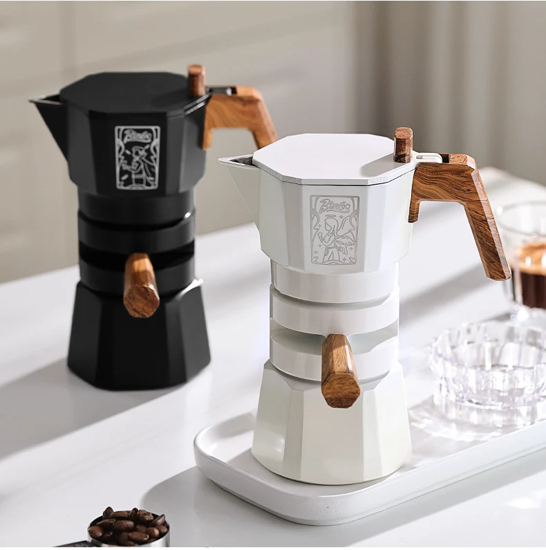 Bincoo Mocha Pot is made of food-accessible aluminum, healthy and safe, with wood glue handle, high temperature and scalding resistance.