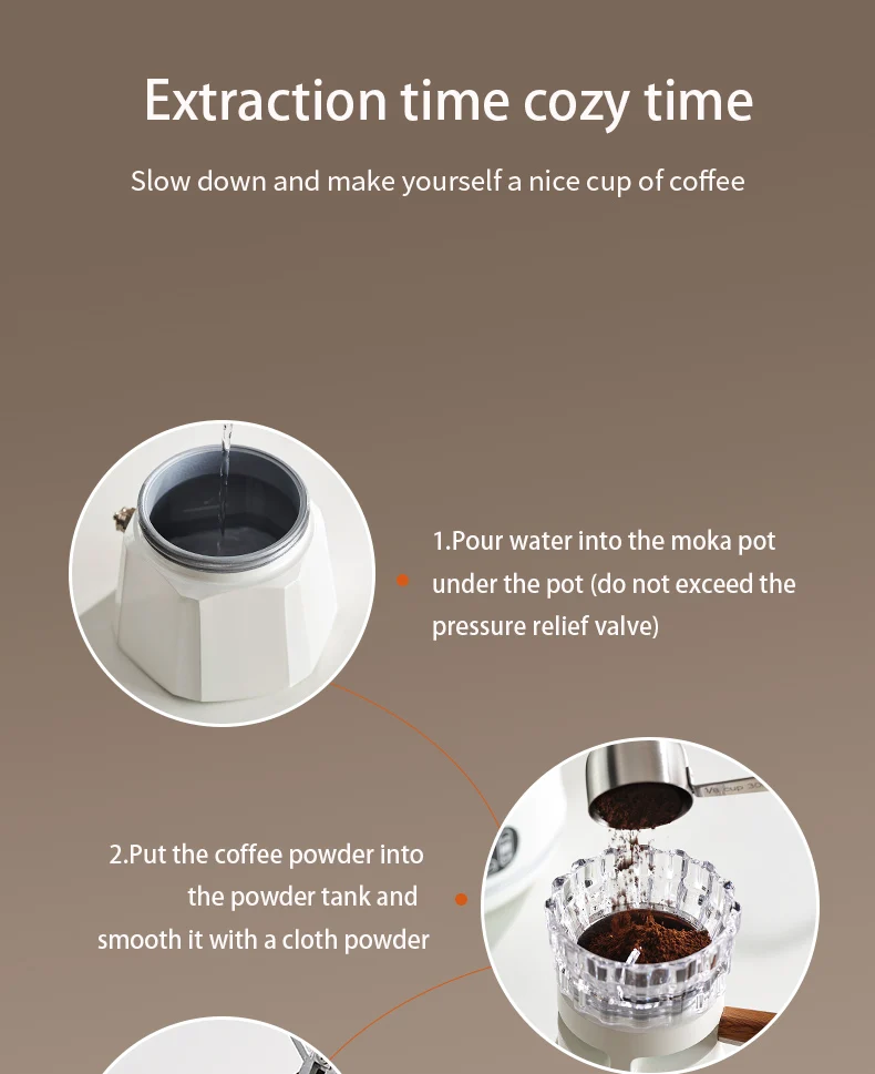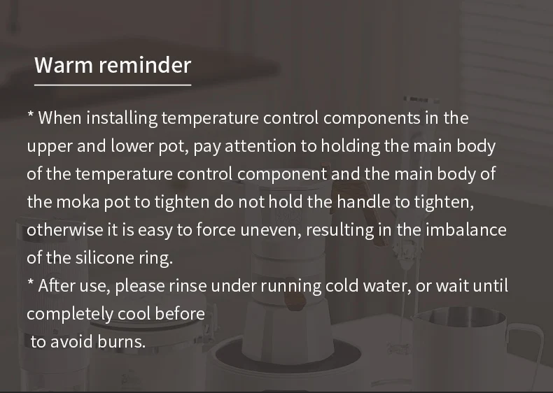 The mocha pot comes with a thermostat, which can be used to lower the temperature to avoid over-brewing the coffee and produce a delicate and delicious coffee.