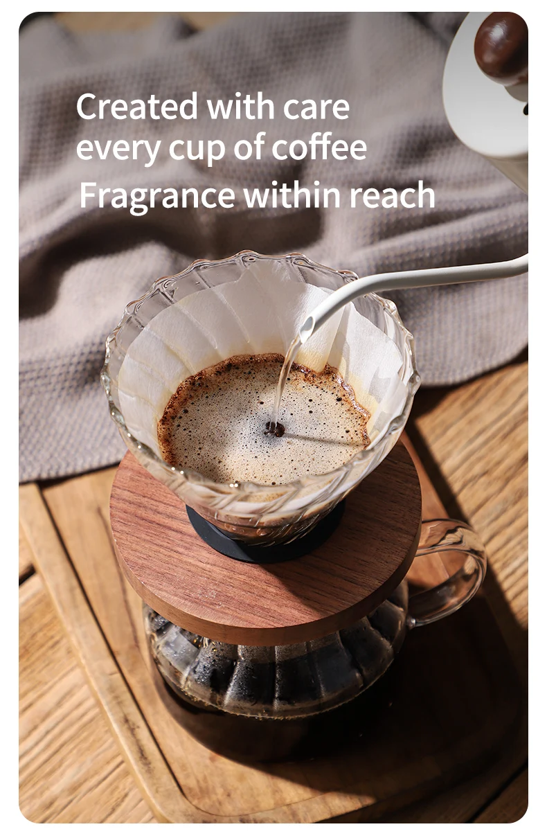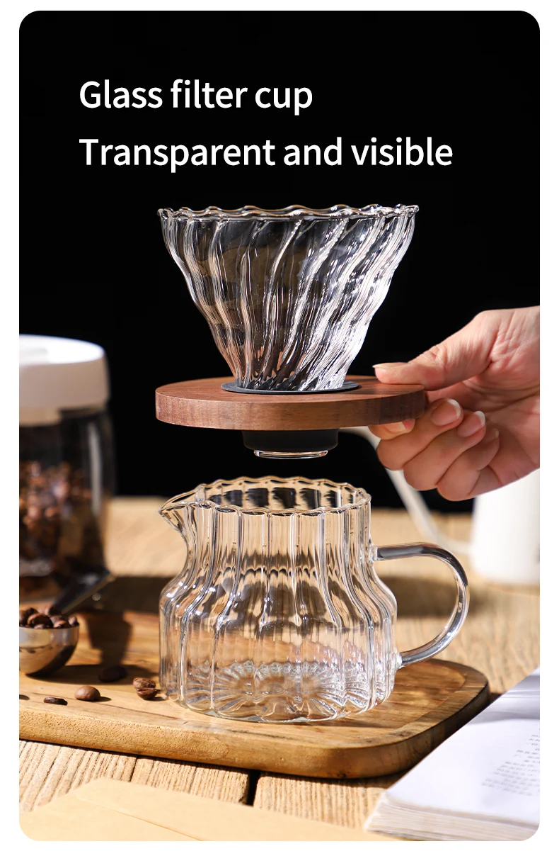 Equipped with a glass coffee filter, this set provides a clear view of your coffee grounds, ensuring a clean and smooth brew.