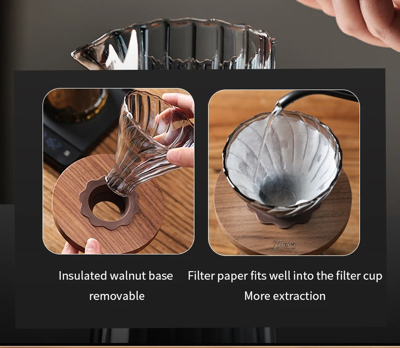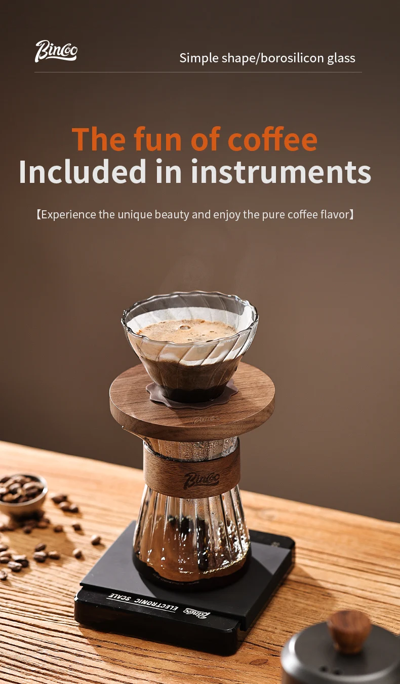 Crafted from durable glass, this Bincoo Pour Over Coffee Maker Set ensures a clear view of your coffee's rich aroma and color.