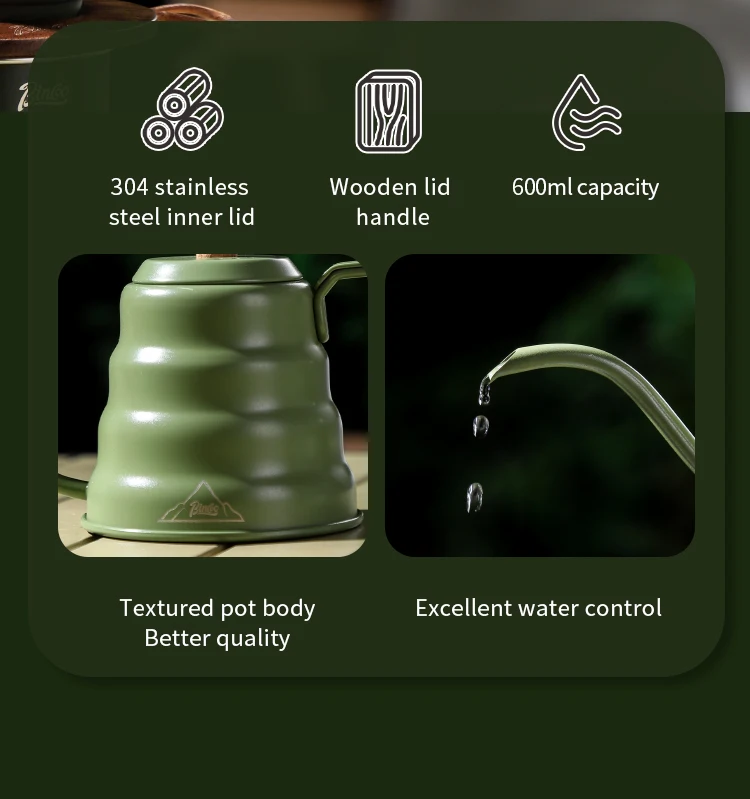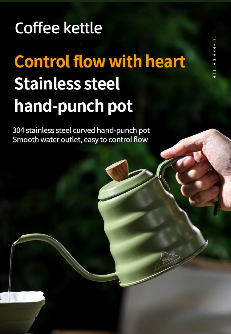 Ideal for both home and outdoor use, this kettle is perfect for hand-brewed coffee enthusiasts.