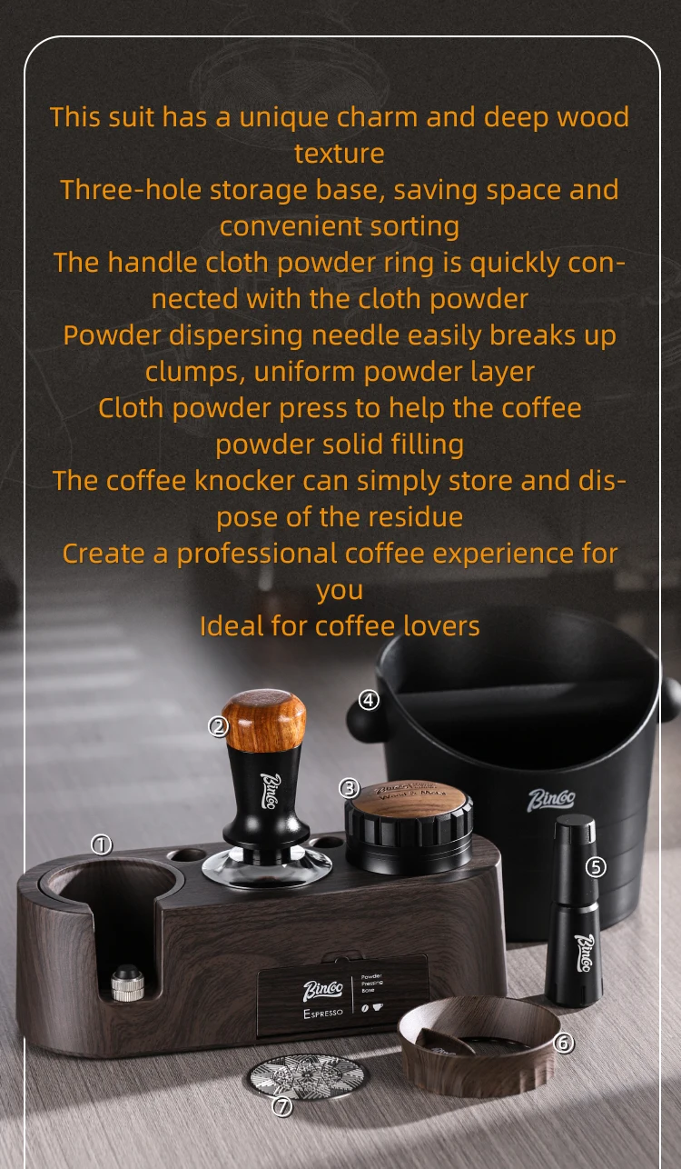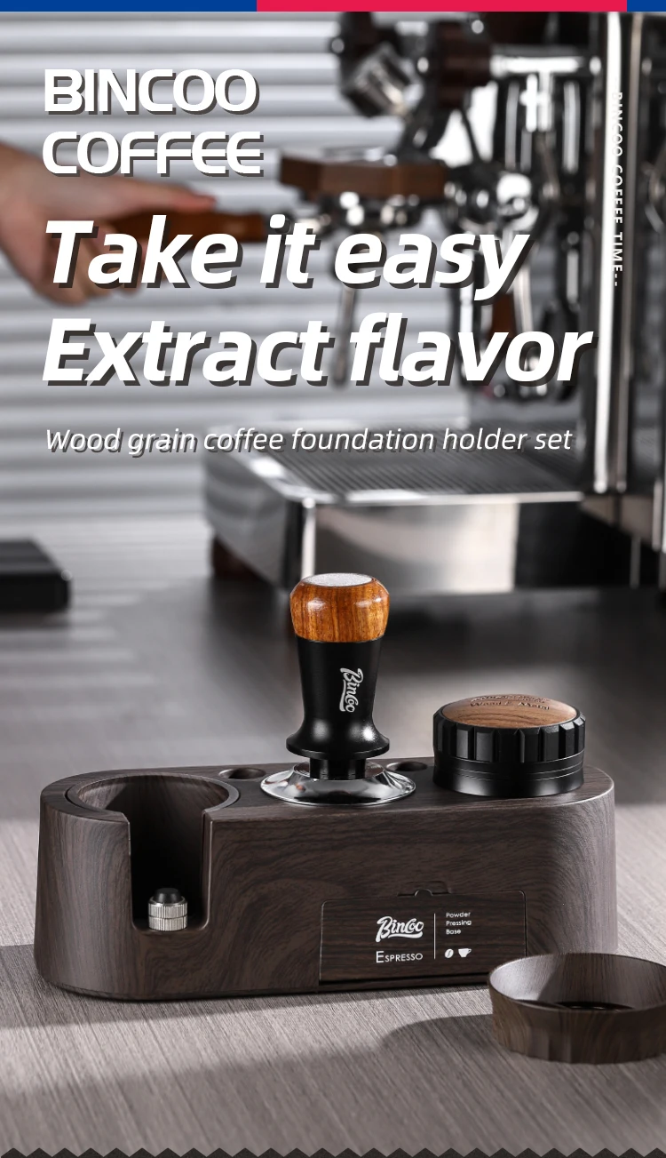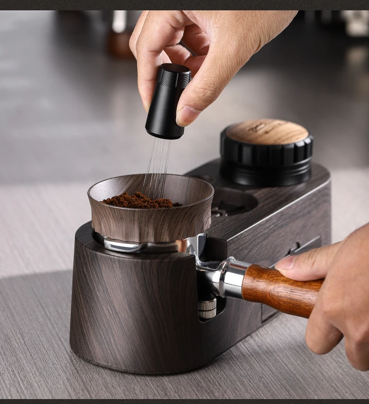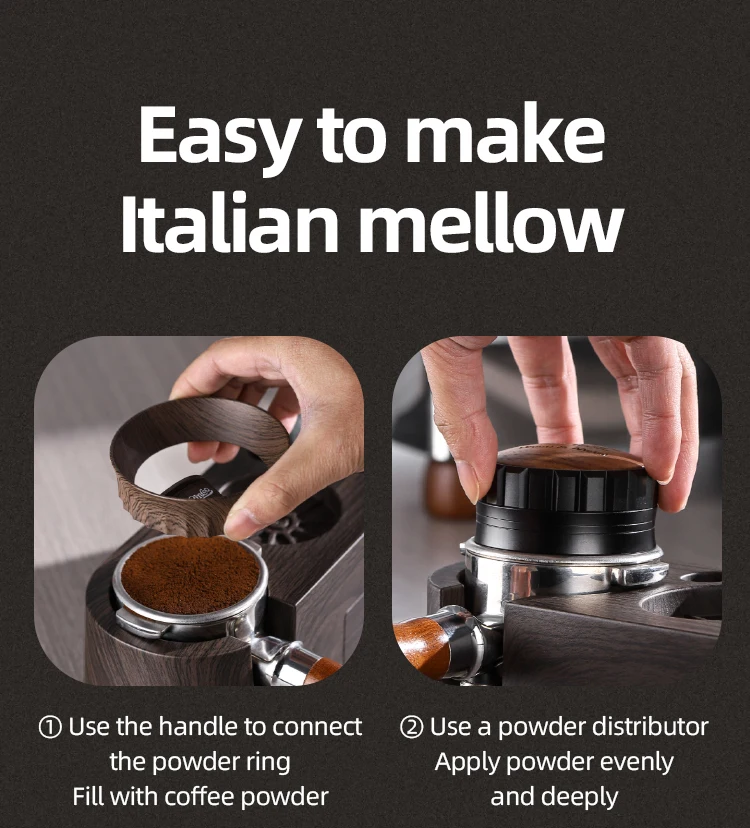 The included coffee hammer tamper storage base keeps your tools organized and within reach during use.