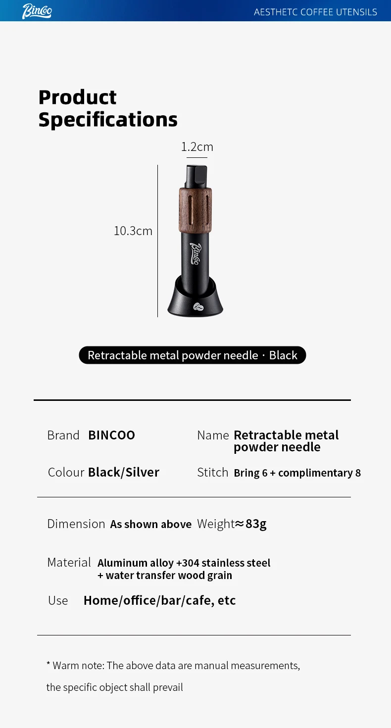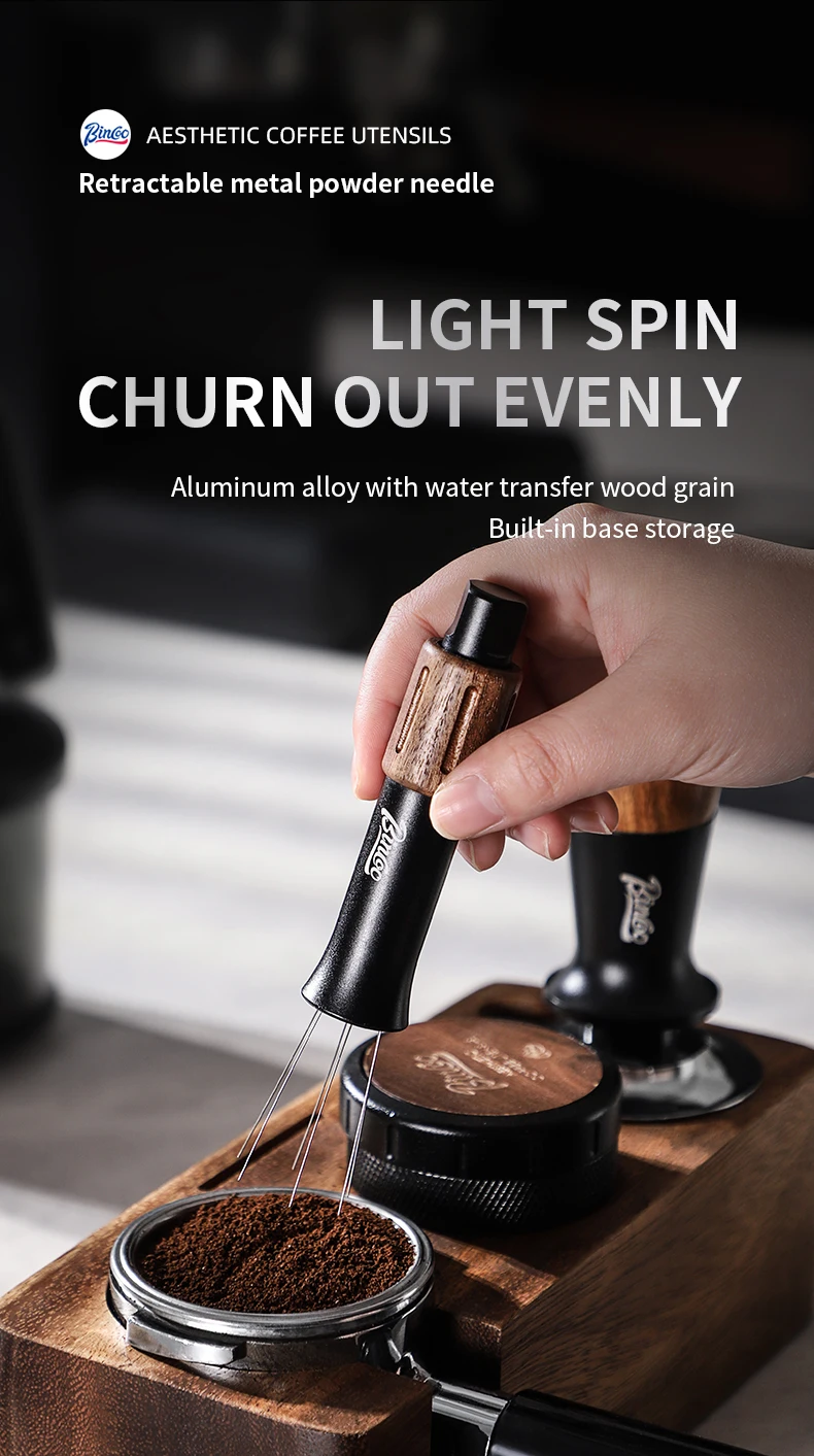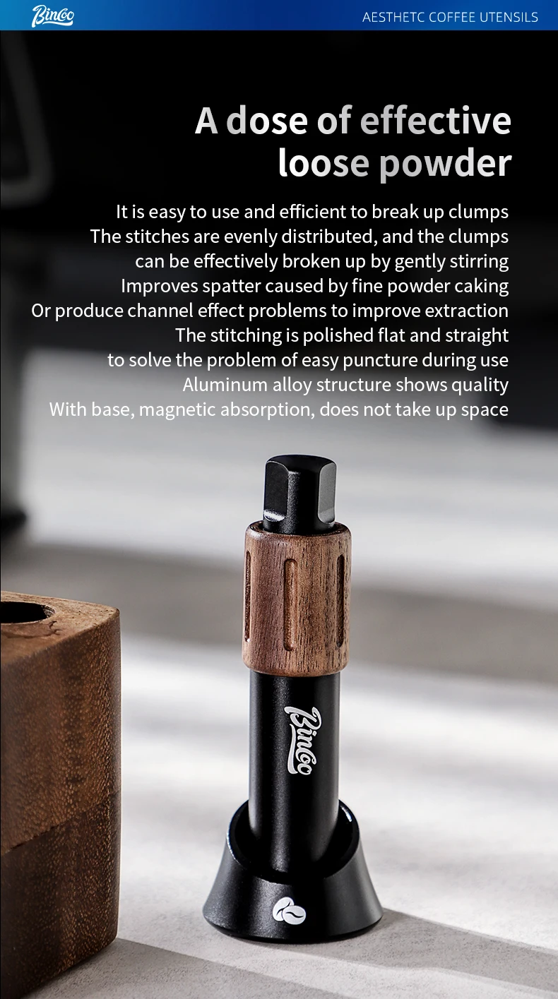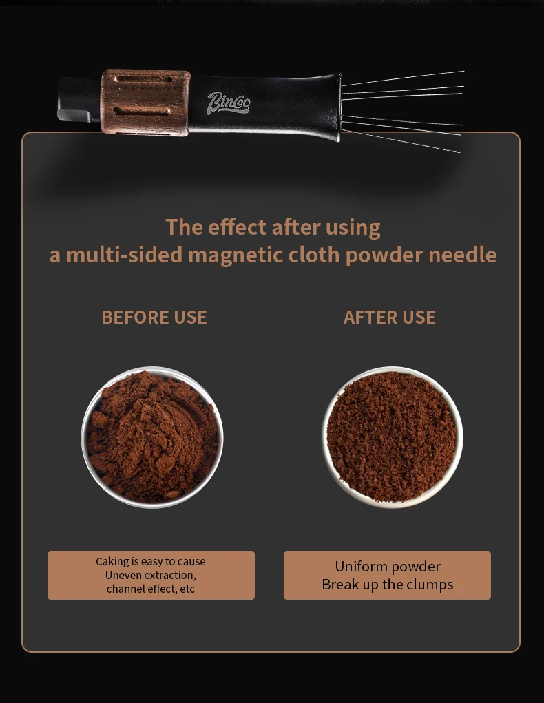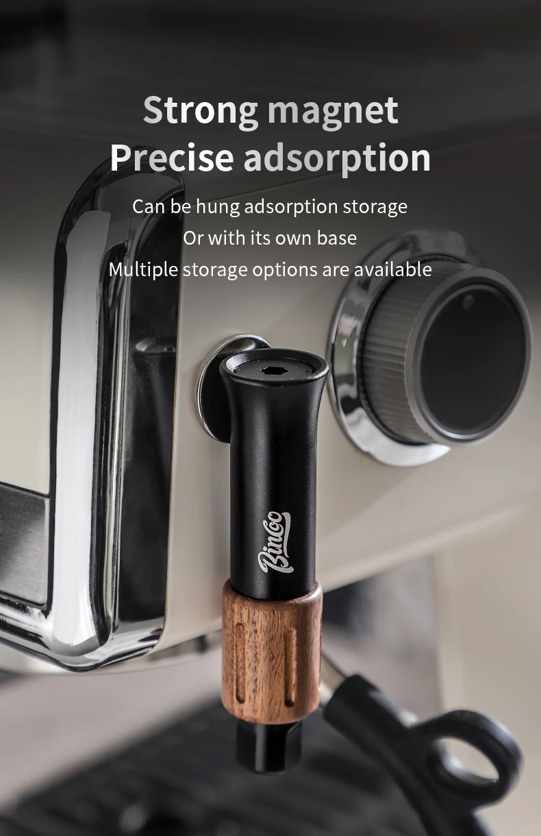 Equipped with a telescopic magnetic loose powder needle stirrer, it efficiently mixes coffee powder for optimal flavor.