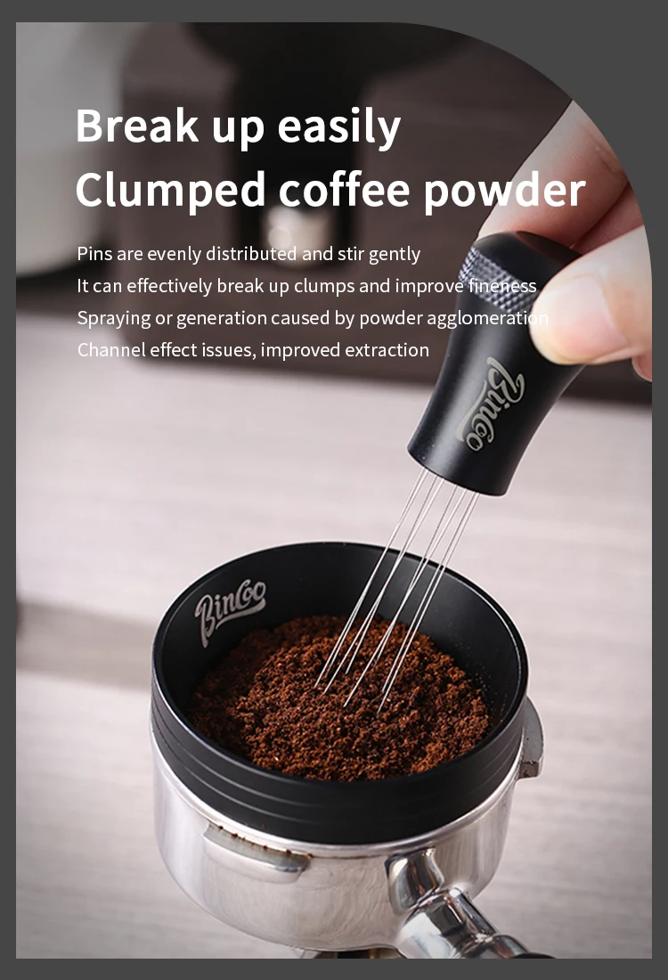 This coffee distributor needle is perfect for stirring espresso powder and distributing it evenly in your espresso shot.