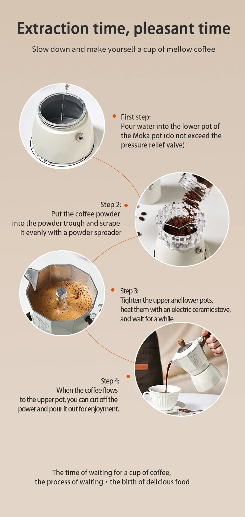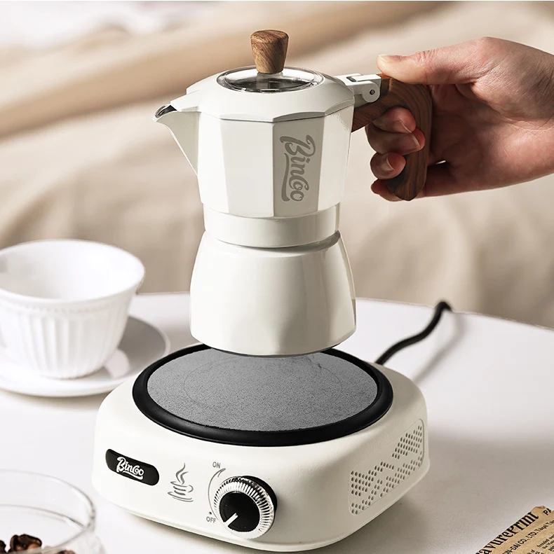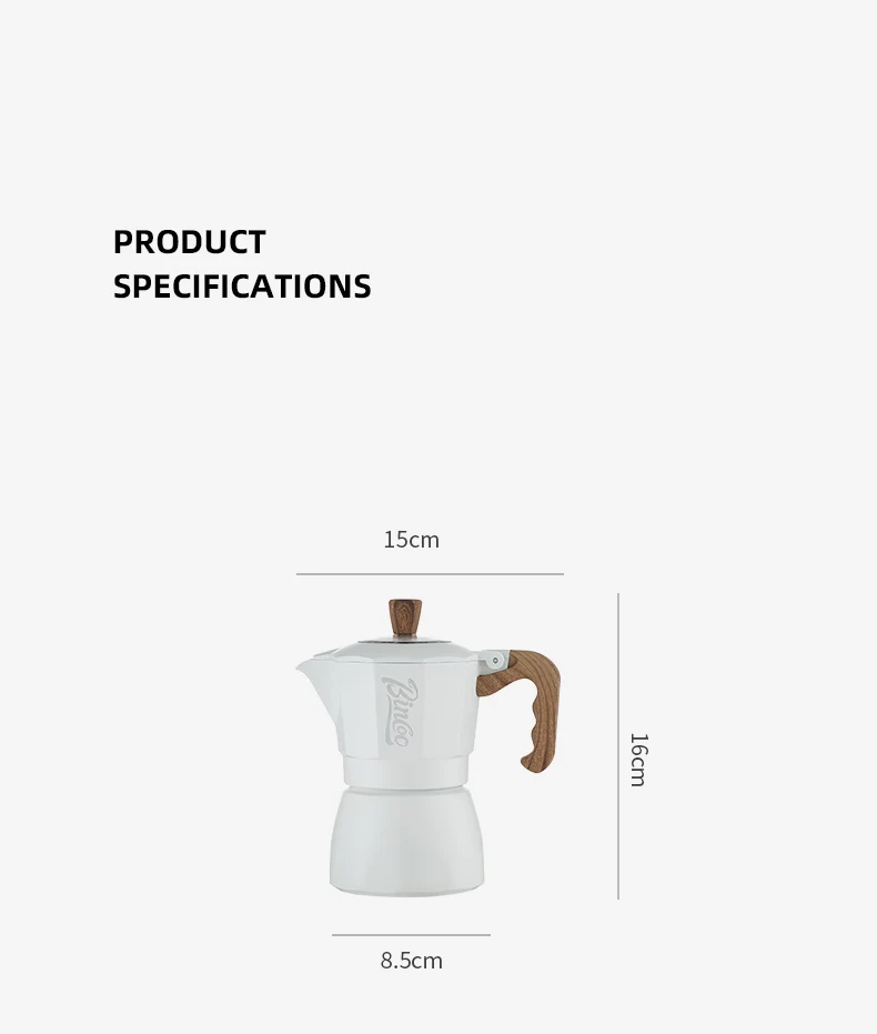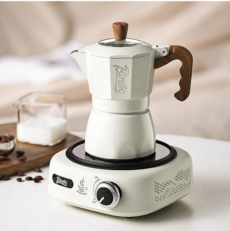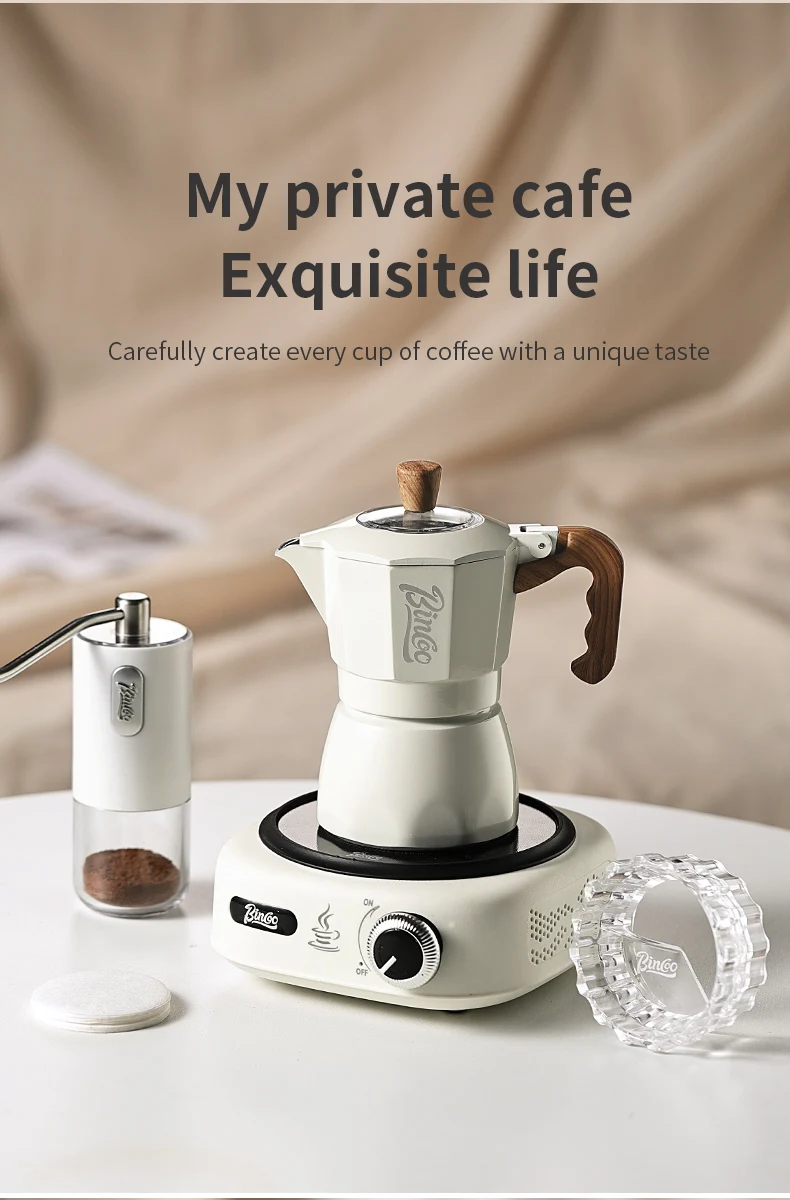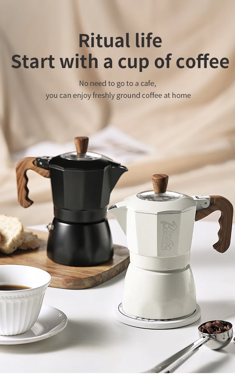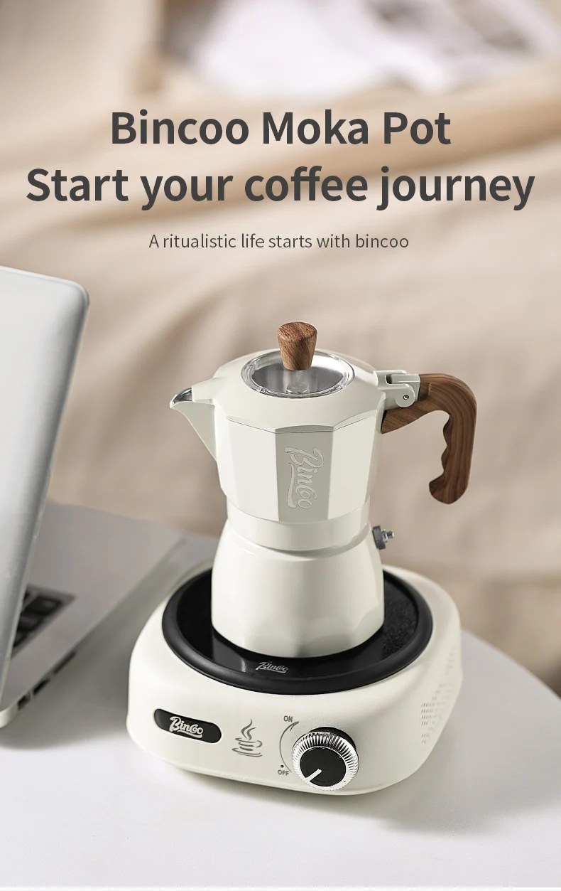 The Bincoo Double Valve Mocha Pot features a unique double valv system for precise espresso extraction.