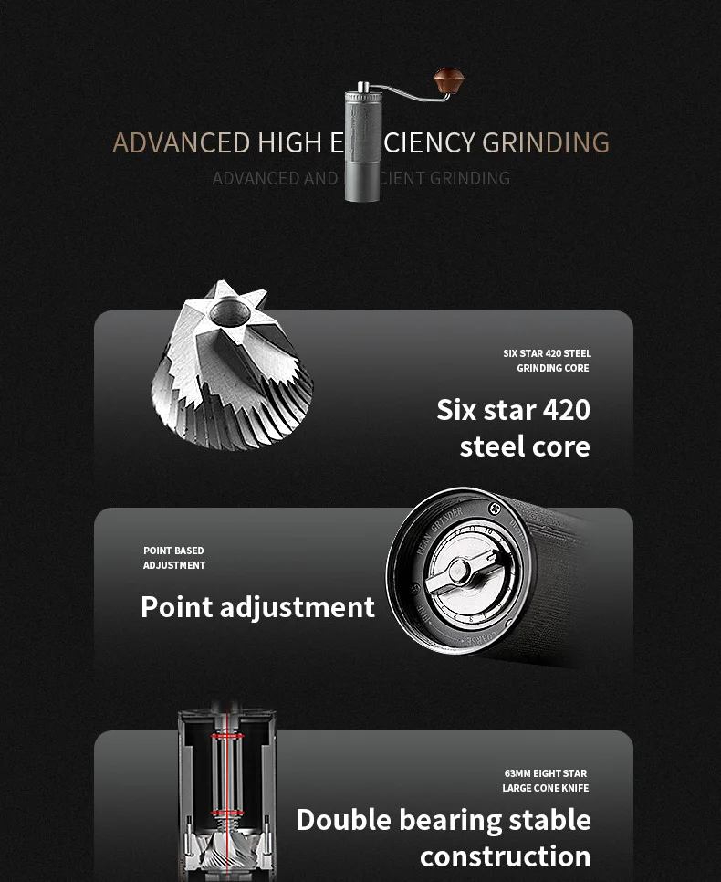 Crafted with 420 CNC steel burr inside, ensuring durability and precision in grinding.