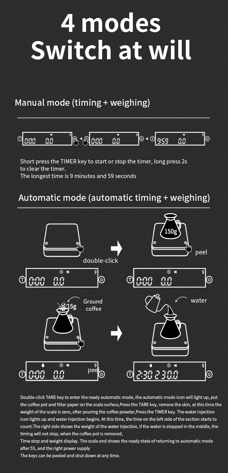 Experience precision brewing with a 0.1g accuracy scale, perfect for espresso and pour-over coffee enthusiasts.