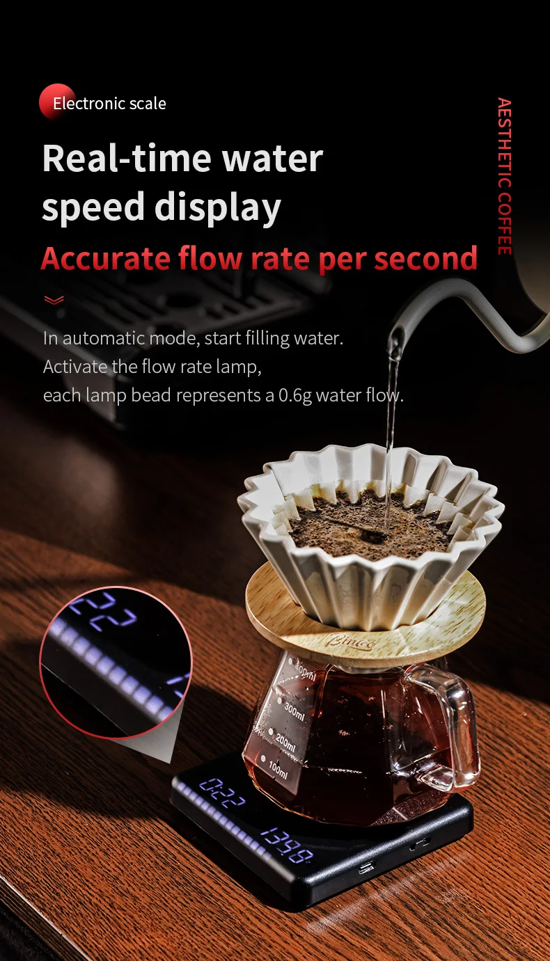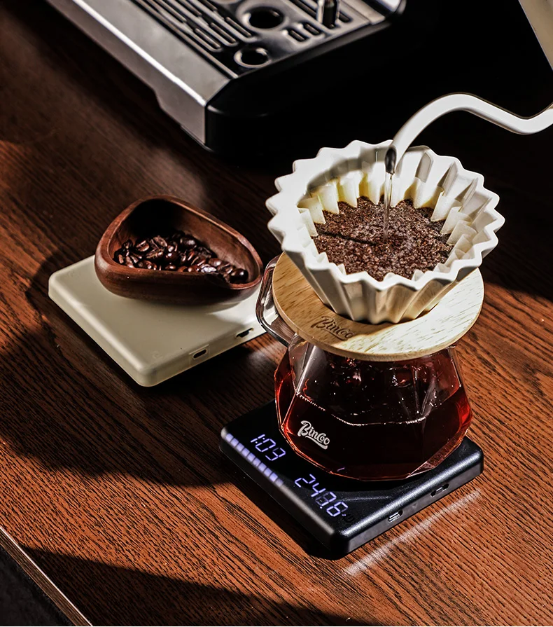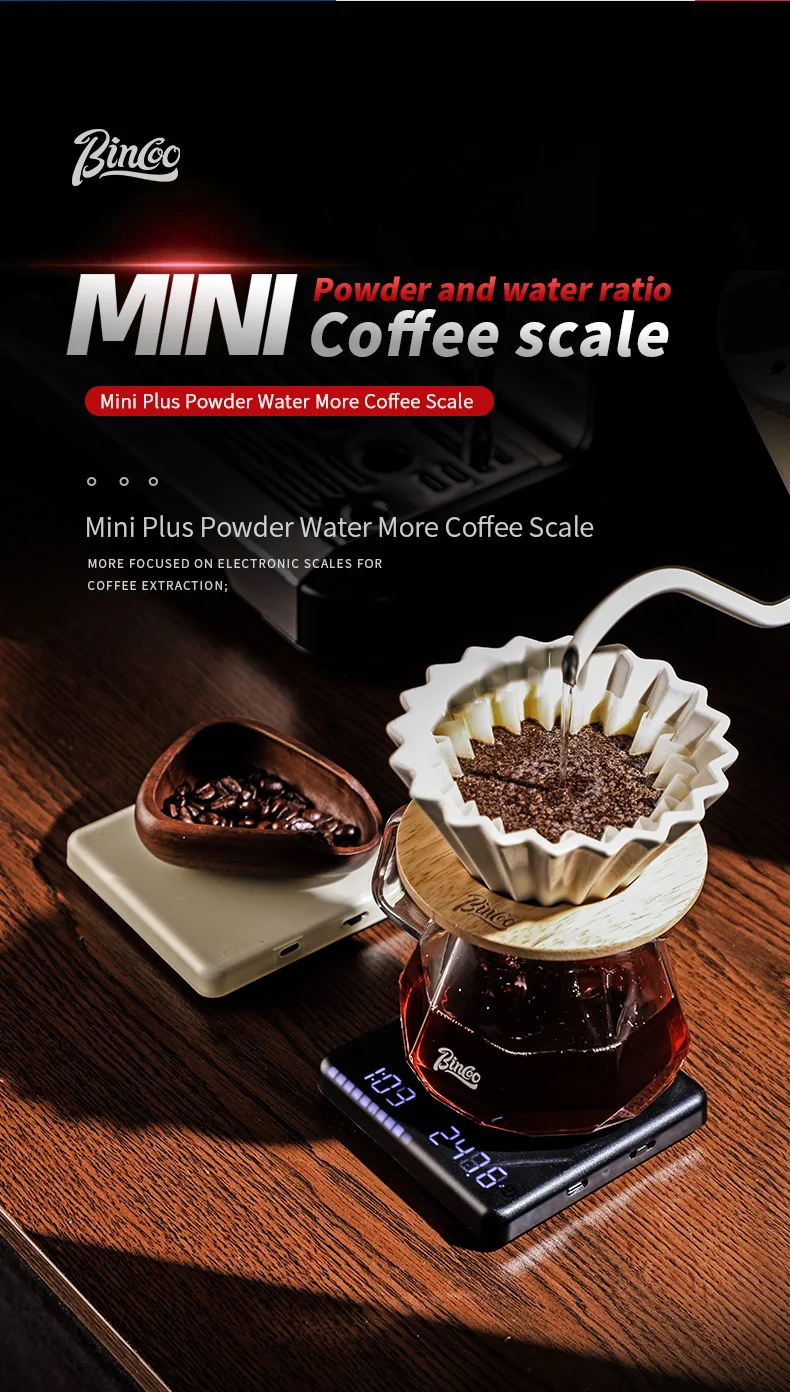 Experience flawless brewing with the Bincoo Mini Plus, featuring a precise weight measurement of 0.1G for optimal coffee extraction.