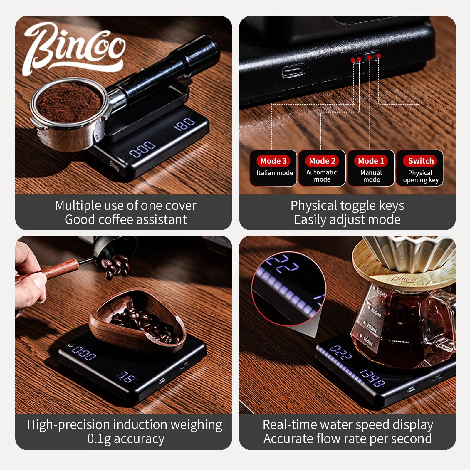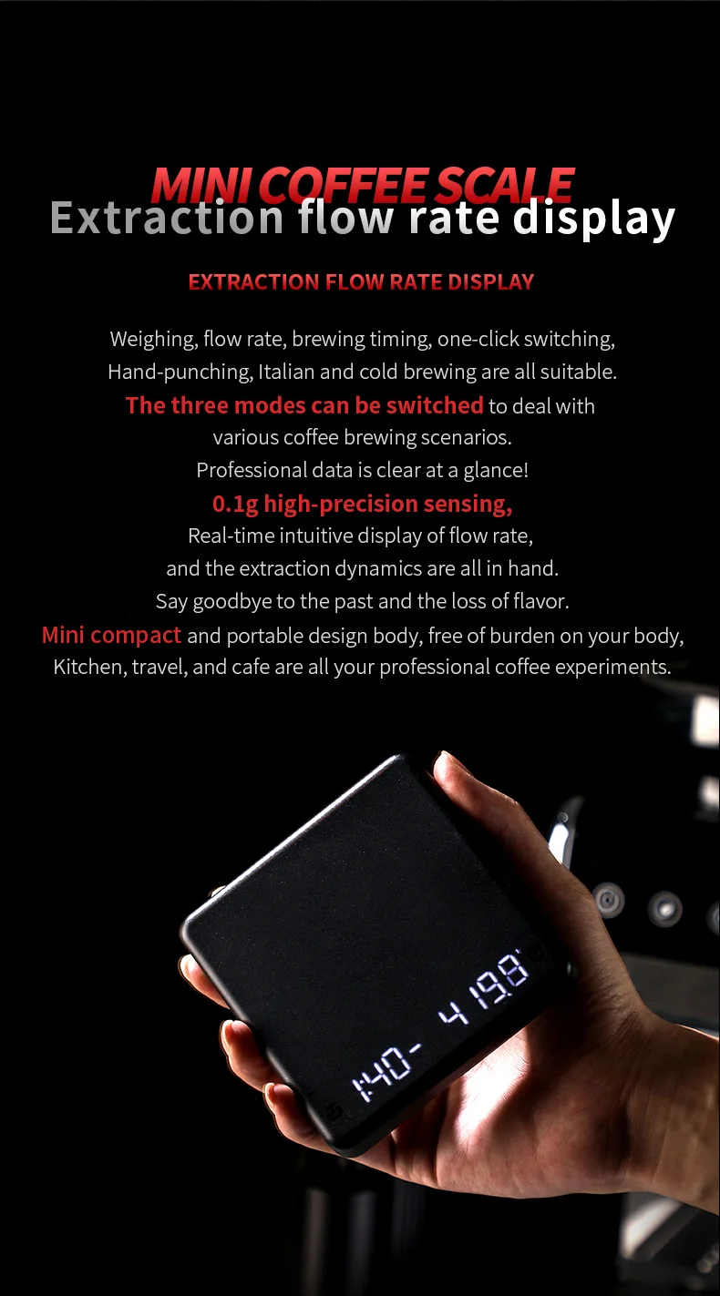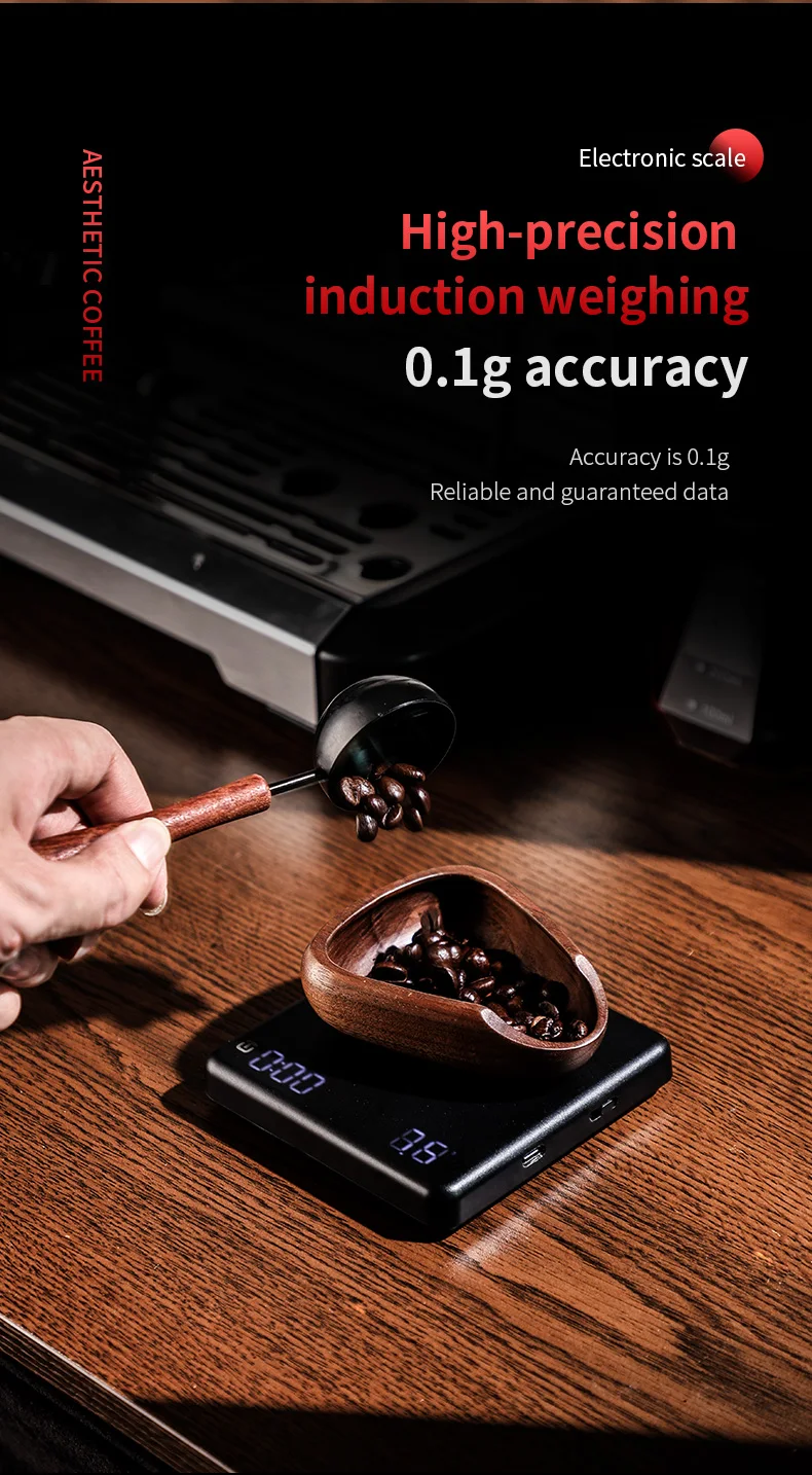Experience flawless brewing with the Bincoo Mini Plus, featuring a precise weight measurement of 0.1G for optimal coffee extraction.