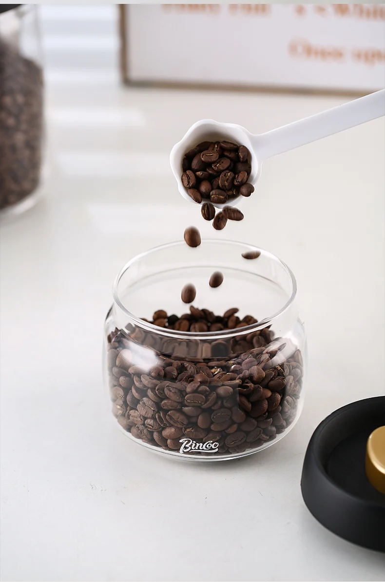 Ideal for coffee beans, grains, teas, and other food items, this jar keeps your kitchen organized and tidy.
