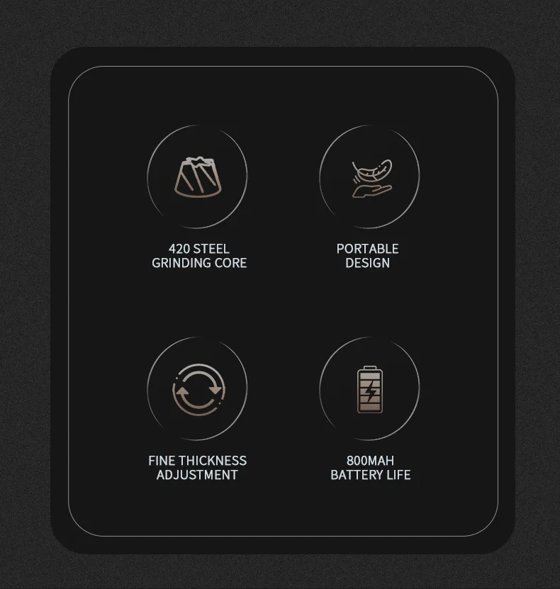 With an impressive 800mAh capacity, this grinder can handle multiple batches of coffee beans without needing to recharge.