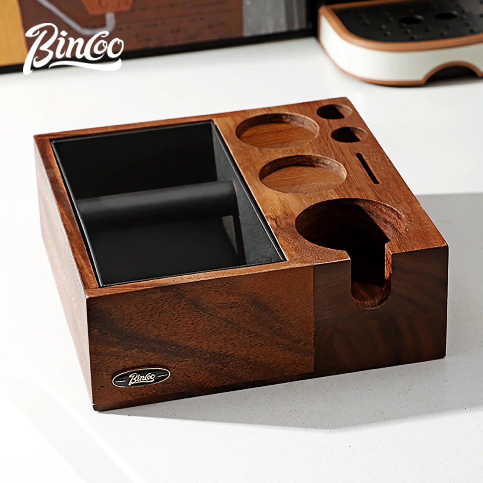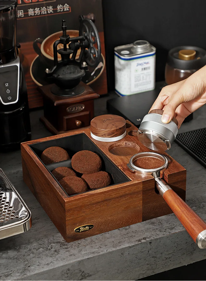 This Espresso Knock Box and Tamping Station combines functionality with elegance, offering a seamless coffee preparation experience.