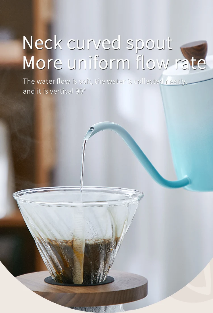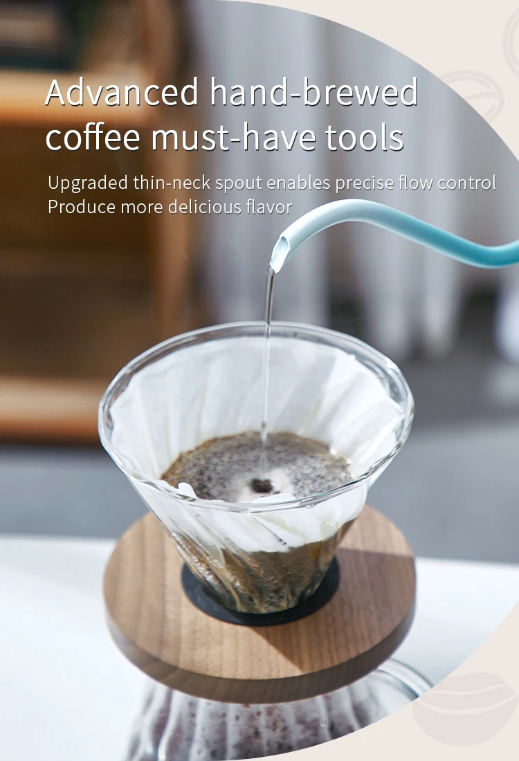 The gooseneck design provides precise water flow control, ideal for perfect coffee brewing.