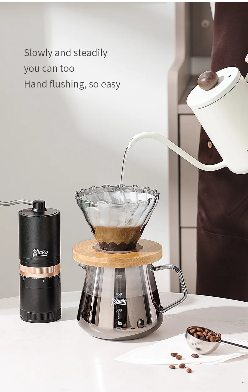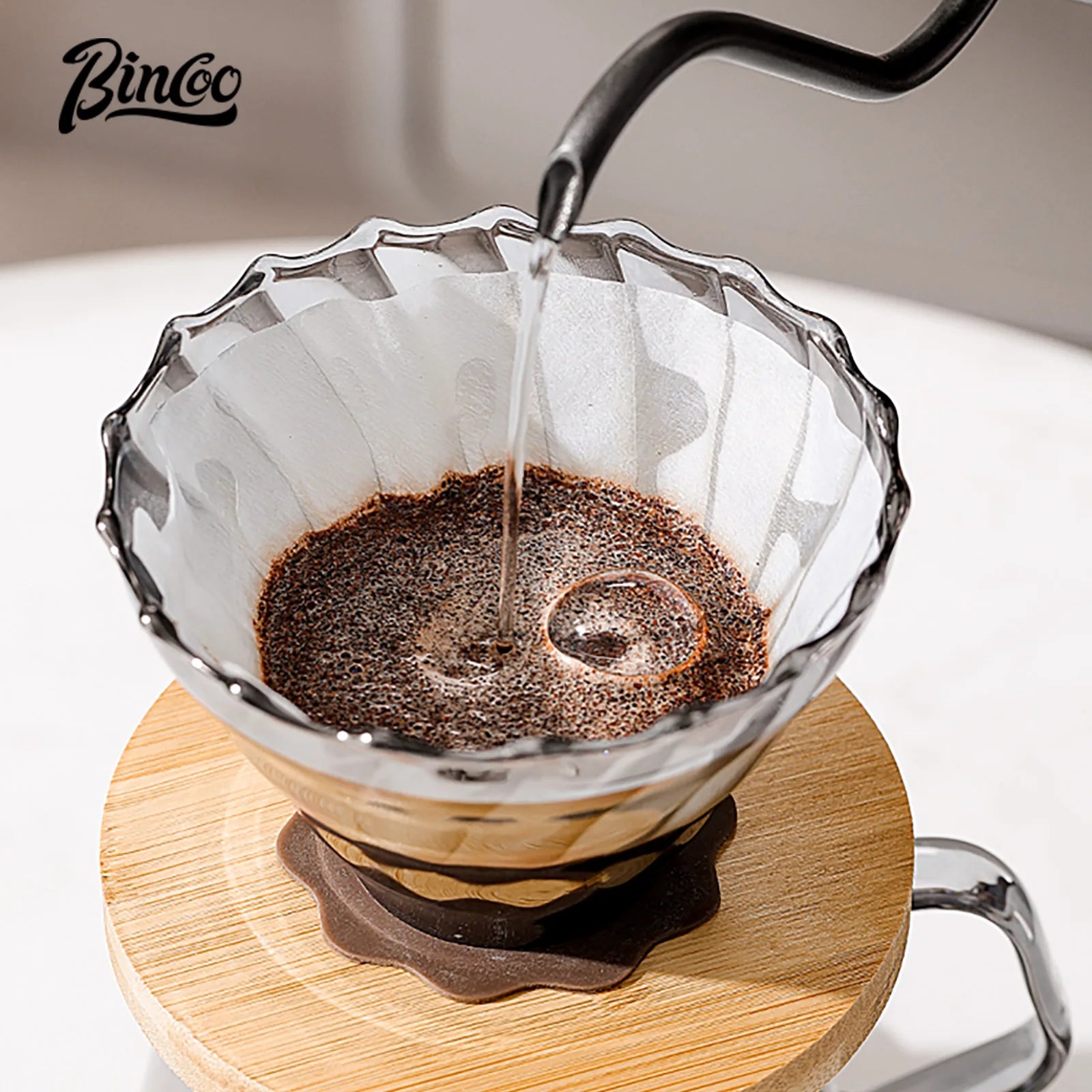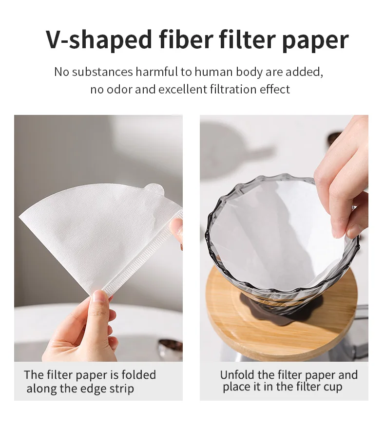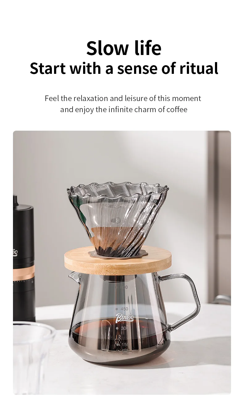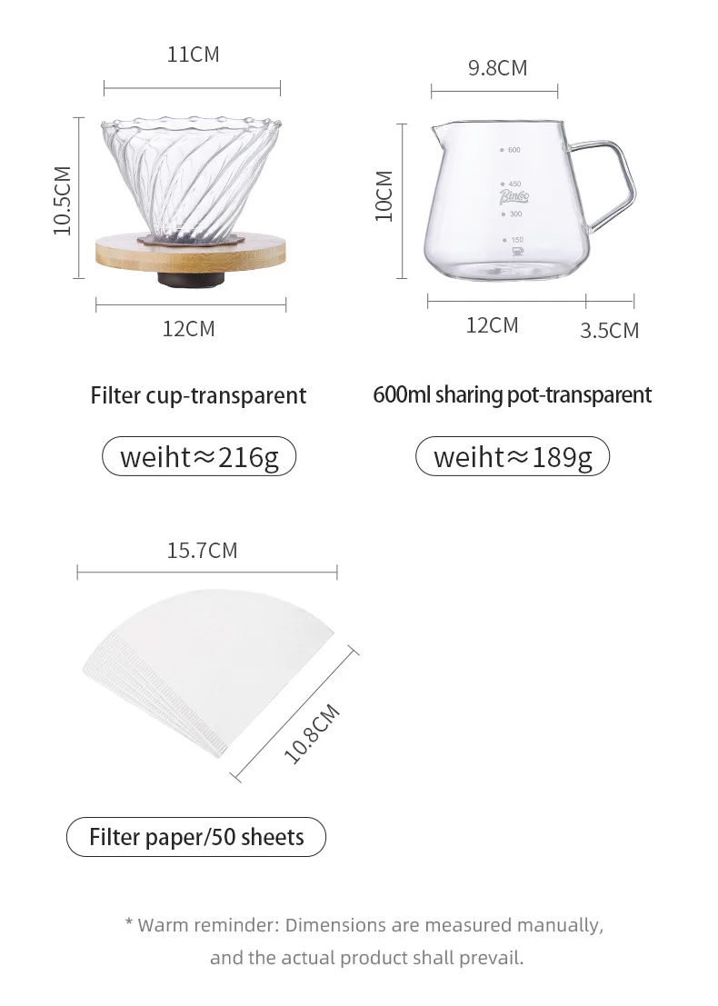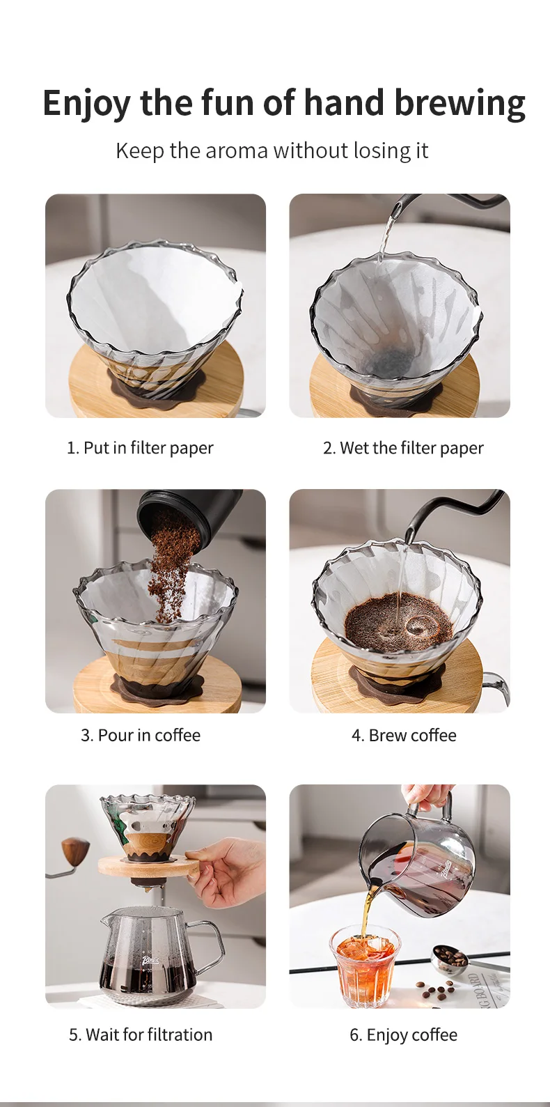 The glass coffee dripper/filter is easy to clean, ensuring your coffee remains free from any residue.