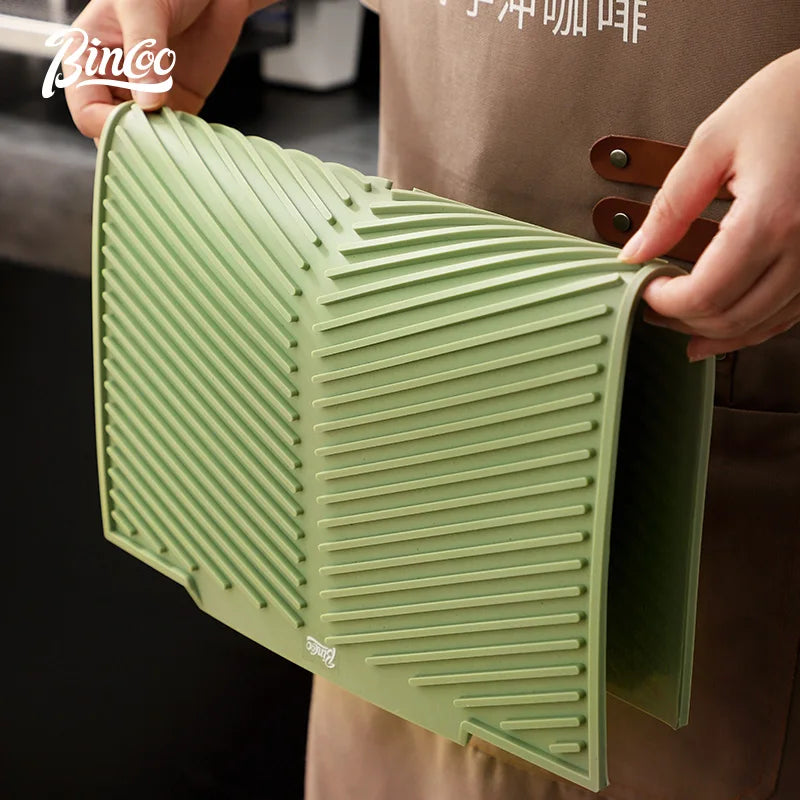 Simple to clean, the mat maintains its appearance and functionality, enhancing your coffee preparation area.